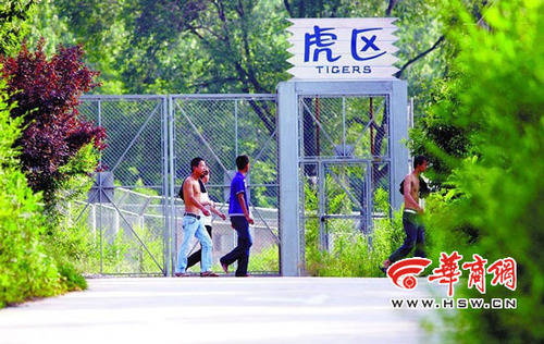 13日下午17時左右,幾名男子經(jīng)過虎區(qū)大門。 記者 李暉攝