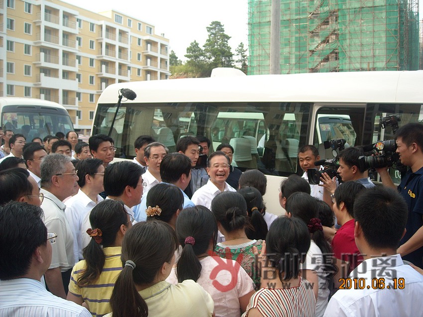 ?溫總理走到人群中,與群眾親切握手。