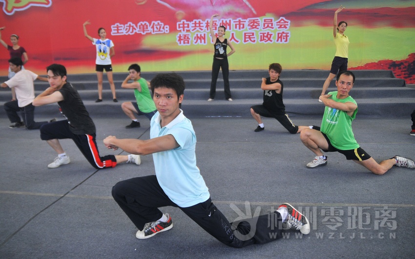 7月6日,市歌舞團的演員們在梧州學院體育館內排練歌舞節目,反復練習動作。李鴻榮 攝