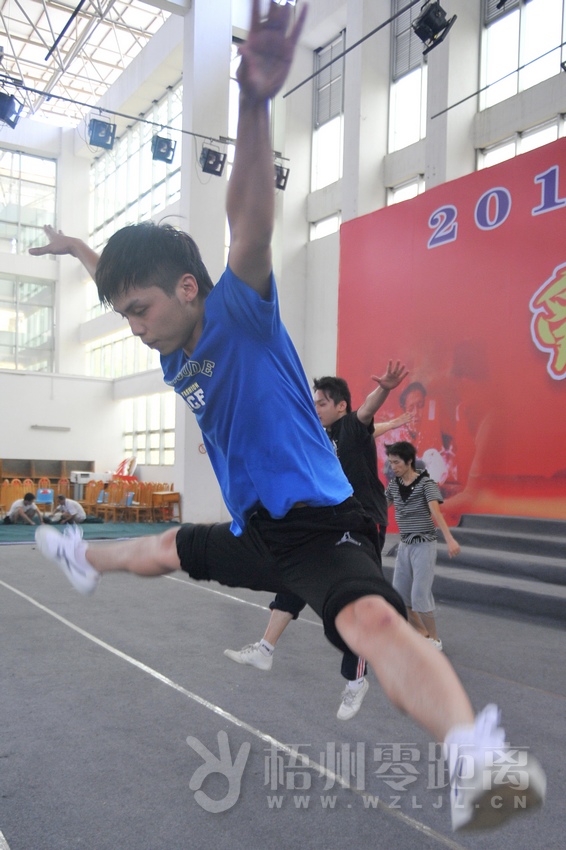 7月6日,市歌舞團的演員們在梧州學院體育館內排練歌舞節目,反復練習動作。李鴻榮 攝