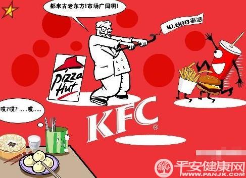 ????麥當勞、漢堡包、肯德基炸雞、比薩陷餅等西式的快餐食品象一陣強烈的旋風般席卷全球,并以瘋狂的態勢涌入中國,中國人尤其是兒童與青少年被這些噴香撲鼻、口感松軟的食物所吸引。而中國人不知道的是,美國人此時卻已經開始了對高熱量高脂肪的快餐進行口誅筆伐,并將他們的洋快餐“兒子”堅決拋棄。中國人接手的這個不太健康的“畸形兒”正在悄悄的蠶食著他的中國“養父母”們的健康。