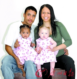 ????2006年,英國一位混血媽媽生下了一對黑白雙胞胎。雙胞胎的父親也是混血兒。 (韓楊) |