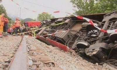 瑞士警方稱,列車共有3節(jié)車廂脫軌,其中兩節(jié)車廂完全傾覆,而這兩節(jié)車廂中多為日本游客。 |