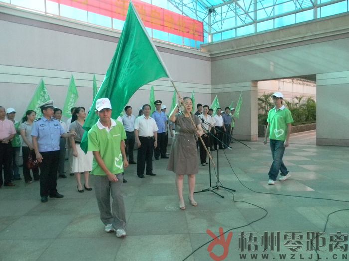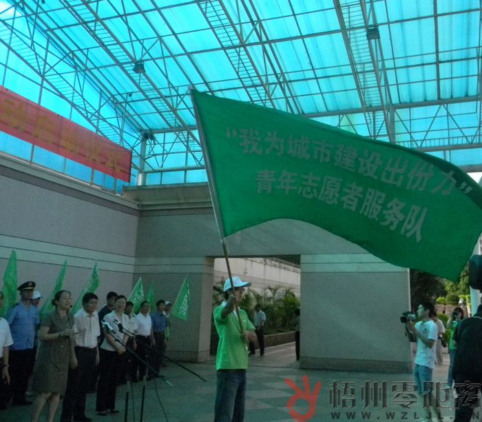 ??? 今日,“我為城市出份力”活動(dòng)啟動(dòng)儀式在市政府廣場(chǎng)舞臺(tái)舉行。市委常委、宣傳部長(zhǎng)、副市長(zhǎng)劉詠梅為青年志愿者服務(wù)隊(duì)授旗。鄭玉華/攝