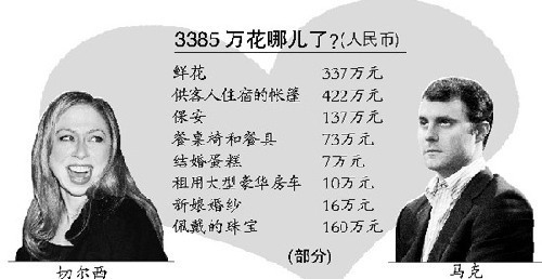 ????據(jù)悉,這場婚禮將花費(fèi)約合人民幣3385萬元,連現(xiàn)任總統(tǒng)奧巴馬都“沒票”參加??傊徽撌峭度脒€是劇情,這場婚禮都堪稱今夏的又一部大片。