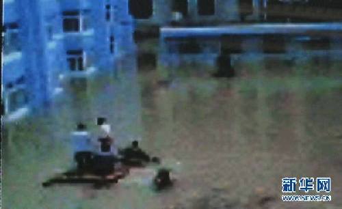 8月8日,甘肅舟曲縣城區已成澤國(電視截圖)。新華社發