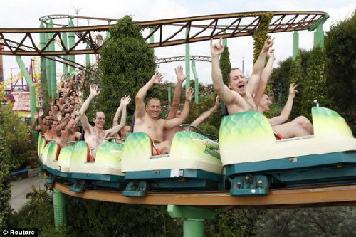 102名裸體男女同坐過山車。