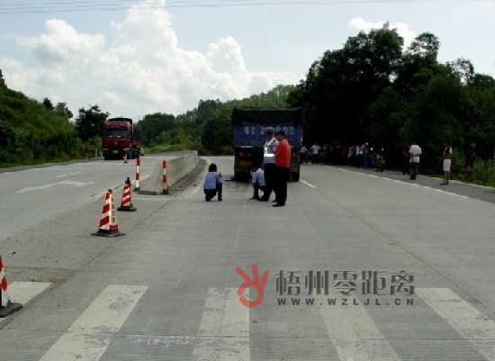??? 8月15日上午,容岑一級公路岑溪市上林村路口發(fā)生一起自卸貨車撞擊并碾壓三歲女童致其死亡的重大交通事故。胡紅 蔣洪波 陸妙