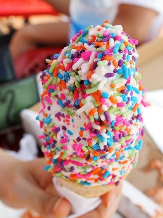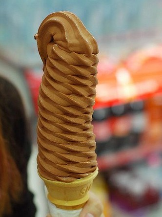 ????而且保證,每家小店主遞給你的蛋筒上的冰淇淋球都會象這圖片一樣滿滿的要溢出來一樣,要是你技術不熟練,會吃得滿手都是。