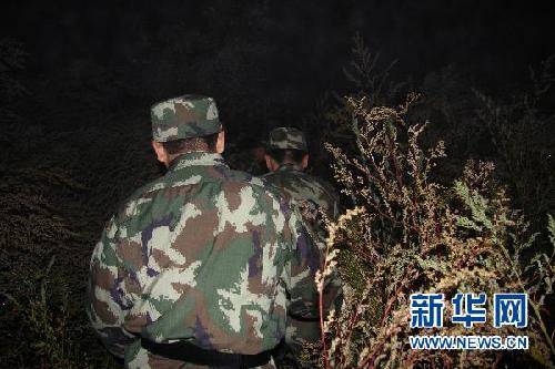 8月25日凌晨,伊春邊防支隊官兵在飛機失事現場林中展開拉網式搜救,尋找幸存者。新華社發(fā)(李廣福 攝)