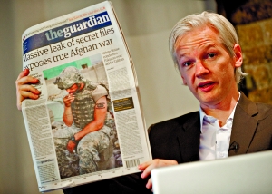 ????資料圖片:7月26日,倫敦,“維基解密”網(wǎng)站創(chuàng)始人朱利安·阿桑奇召開新聞發(fā)布會,他手拿一份《衛(wèi)報》,報上頭條就是此次“泄密事件”。