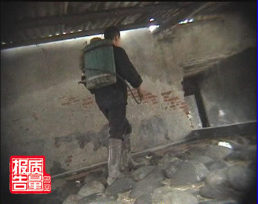 ??? 記者:這水咋是這顏色的呢?工人:兌的那個是,它就是防爛的(藥)。老板:這是用開水兌的,苯甲酸鈉。記者:為什么有這么多的蟲子?老板:腌(泡酸菜)的時候就有蟲子,打了藥就沒有了。過了一會,一名工人開始向腌泡菜的池子里打藥。這名工人還告訴我們,為了防蟲子,泡菜在出廠前每隔幾天就要打一次藥。記者:這屬于農用的殺蟲劑,是吧?工人:對,(這是)低毒的。這種“藥”是什么呢?工人和老板都說不知道。