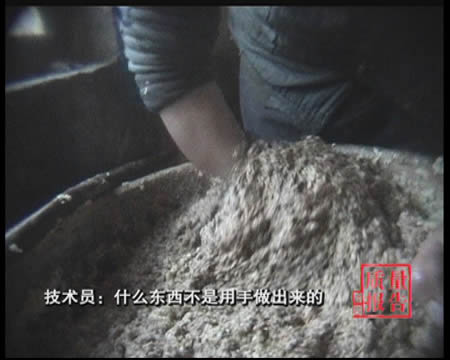 ??? 記者:你怎么用手攪拌呢?技術員:手比棍子得勁,棍子面積小,手還靈活。記者:這樣衛生嗎?技術員:衛生,什么東西不是用手做出來的,吃的東西都是用手做出來的。