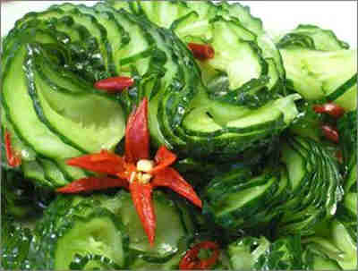 ????1、酸辣黃瓜拌涼粉(黃瓜+辣椒)