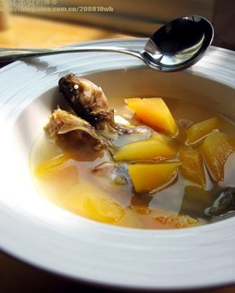 ????制作材料:木瓜半個、黃顙魚3尾、高湯1碗、生姜1塊????制作調(diào)料:鹽、胡椒粉少許