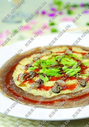 ????若不是大S演的《轉(zhuǎn)角遇見愛》,也許很多人還不知道蚵仔煎是什么。但是,就算知道了蚵仔煎(閩南話為ǒu ā jīan,普通話譯作“海蠣煎”)這個(gè)名字,又有多少人真的吃過或是嘗過呢?南宋御街上的這道蚵仔煎無疑大大滿足了人們的求知欲與好奇心。據(jù)說,蚵仔煎是在一種創(chuàng)意料理,是臺(tái)南安平地區(qū)一帶的傳統(tǒng)點(diǎn)心,是以加水后的番薯粉漿里攪拌入蚵仔、蛋、蔥或蒜等食材所煎成的餅狀物。
