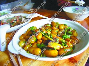 ????在溫州泰順,以土豆為原料制成的各種小吃,是當(dāng)?shù)匦〕缘囊淮筇厣D纤斡值拿朗程斓乩铮覀儸F(xiàn)在能嘗到的便是那一看就讓人有點(diǎn)想流口水欲望的泰順土豆丸,基礎(chǔ)的土豆丸是早就做好了的,老板在店里邊炒邊賣,根據(jù)客人的口味再加上辣椒醬、蔥、香菜等佐料,下到口里,丸子特有的韌勁、嚼勁、爽滑和土豆的香糯,融為一體,很是享受。(記者 桑迪紅) |