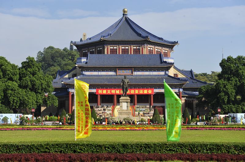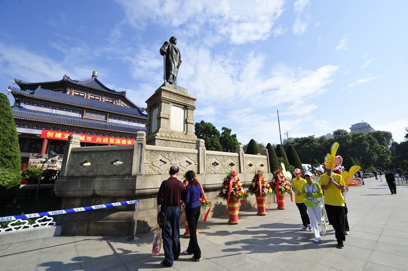11月12日上午9點左右,市民、游客來到中山紀念堂參觀游覽,11月12日是偉大的民主革命先行者孫中山誕辰144周年紀念日。當日,第十六屆亞洲運動會即將在廣州開幕。新華社記者梁旭攝