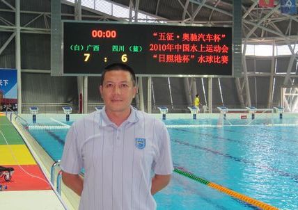 范獻華在2010年中國水上運動會執裁水球比賽的比賽現場。圖片由范獻華提供。