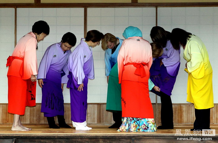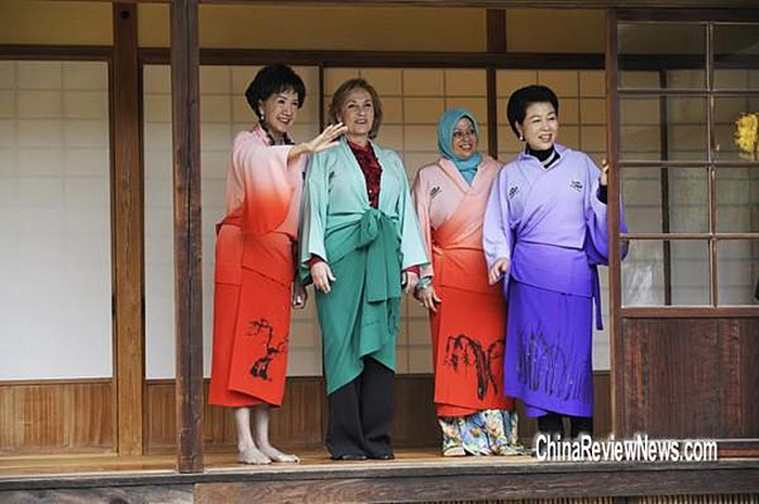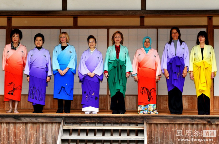 ????一年一度的亞太經合組織(APEC)首腦會議日前在日本橫濱舉行,一年一度的APEC峰會總少不了穿“全家福”合影的輕松時刻。不過,今年橫濱APEC并未遵照慣例向領導人提供民族服裝;另一邊,許多領導人夫人卻穿上了新式環保和服,十分搶鏡。(2010年11月14日攝)
