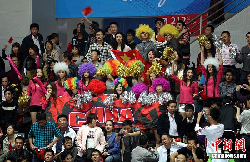11月17日,廣州亞運會男排小組賽迎來最后一天的較量。在當晚進行的中國男排對陣泰國男排的比賽中,看臺上一群美女觀眾令賽場氣氛大為火爆。