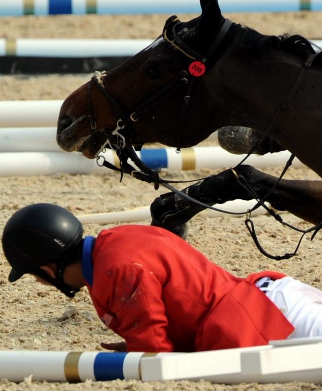 亞運馬術障礙賽 西亞選手“馬失前蹄”