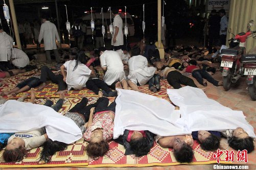 ????由于游人太多,金邊市區連接鉆石島一座狹窄的橋發生晃動,引起橋上人群的恐慌,兩邊人群互相推擠踩踏,導致了慘劇,不少人情急之下跳進河中才得以生還,有幸存者表示,自己在混亂中跌倒后被人拉起來,才幸免于難。