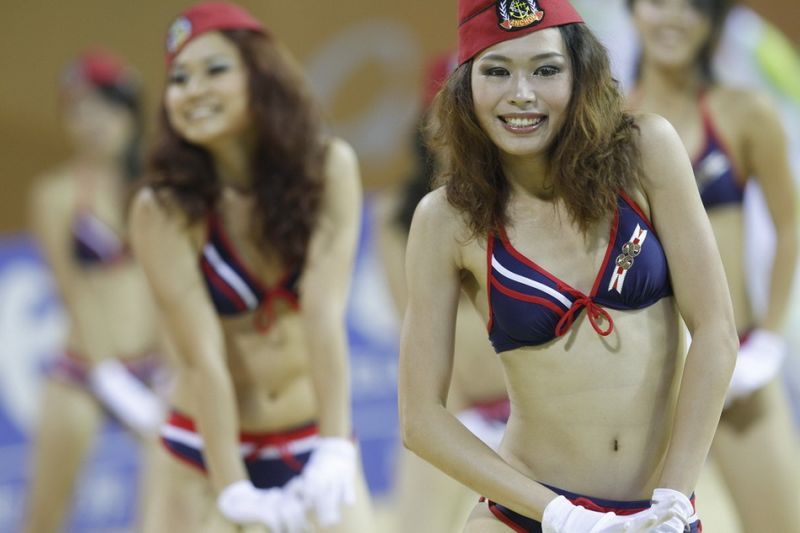 在亞運會賽場上,拉拉隊的寶貝身穿性感的服裝,表達對中國隊的支持。攝影 陶震宇