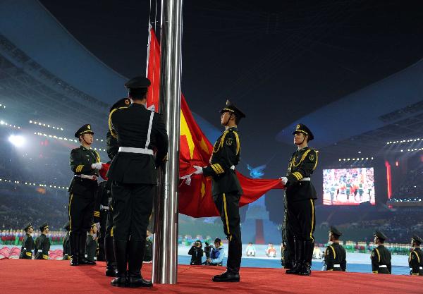 這是開幕式上的升旗儀式。 新華社記者任軍川攝