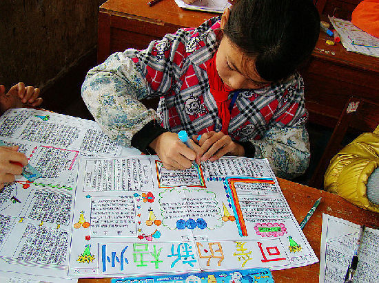 ??? 12月20日,長洲區長地小學組織了40多名小學生集中在教室進行現場手抄報比賽,孩子們在老師的指導下,專心致志地描繪“可愛的新梧州”。