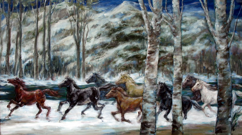 V01《冬之舞.馬到功成》(油畫)2000×1200(mm) 5800元