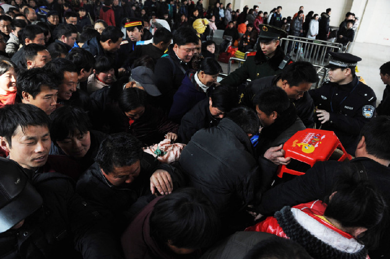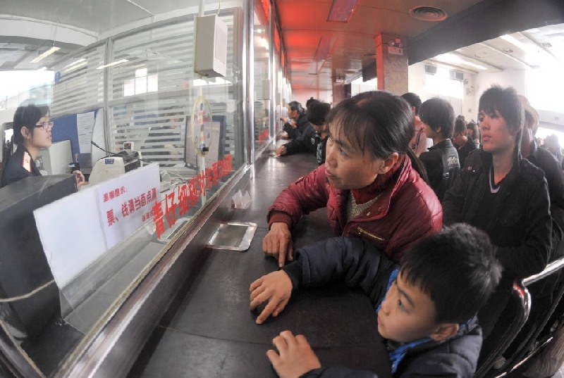 ??? 2011年2月19日 合肥站迎來(lái)春運(yùn)最后一輪客流高峰 2月19日,在合肥火車站,前往廣東東莞方向的旅客進(jìn)站乘車。