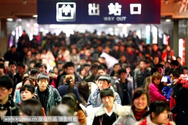 2011年2月19日,旅客走出南京火車站出站口。/ 東方IC