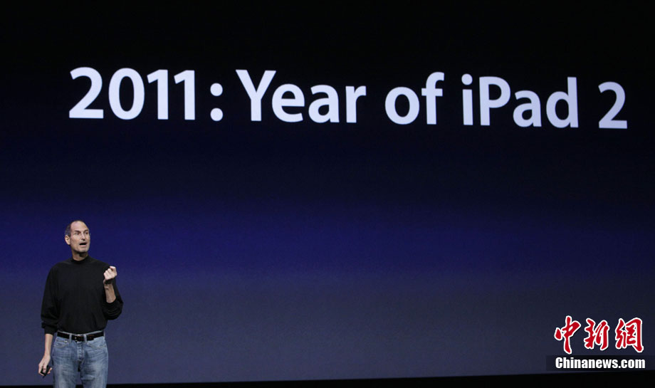 ??? 3月2日,蘋果公司首席執行官史蒂夫·喬布斯在美國舊金山舉行的新產品發布會上介紹iPad 2。當天,美國蘋果公司推出新一代平板電腦iPad 2。