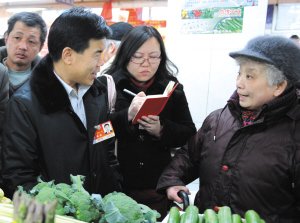 委員在農(nóng)貿(mào)市場(chǎng)調(diào)研