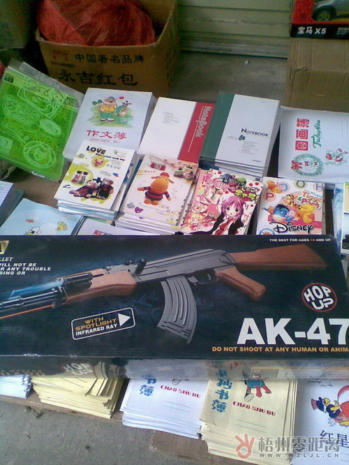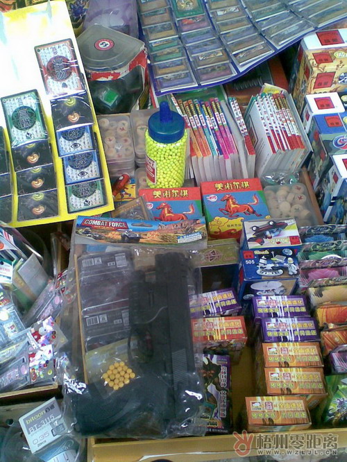 但在振興小學(xué)校門口附近的地?cái)偅涂梢钥吹酱蟠笮⌒〉姆抡鏄屧诔鍪邸_@些玩具仿真槍小的如手槍款,大的有約一米左右的機(jī)關(guān)槍款,價(jià)格從10元到90元不等,都是使用BB彈的,且沒有生產(chǎn)商家。據(jù)記者觀察,攤主均知道銷售玩具仿真槍是違法的,只擺放少部分的手槍款式在攤位上,當(dāng)顧客對(duì)款式感到不滿意時(shí),就會(huì)說庫(kù)存還有更多款式,兩分鐘就可以拿過來。