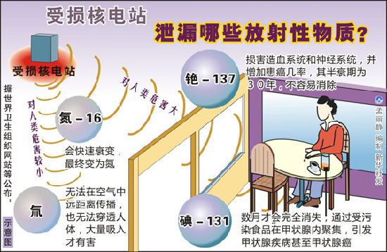圖表:受損核電站泄漏哪些放射性物質? 新華社發
