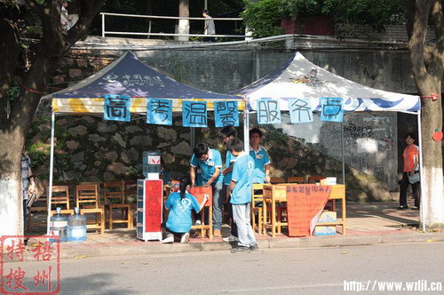 考點附近設有志愿者服務點。梧州特搜/攝