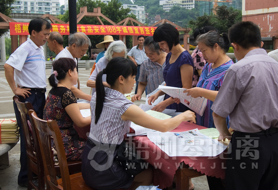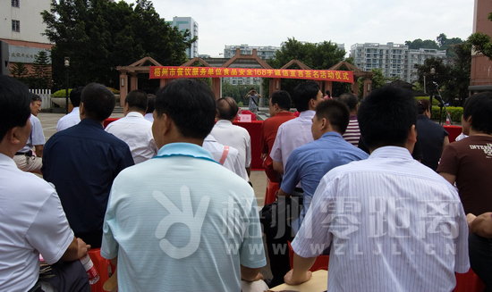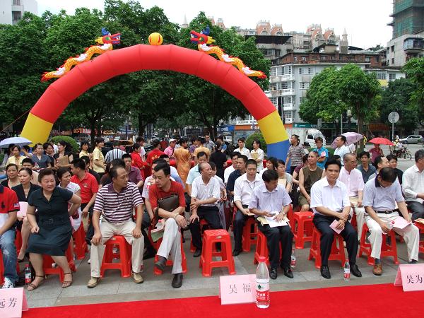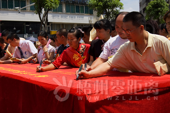 為加強梧州食品安全監管,減少梧州食品安全問題,樹立梧州良好食品安全形象,構建食品安全放心城市,6月9日上午10點30分在梧州市蝶山區潘塘公園大門口,由梧州市食品藥品監督管理局、梧州市飲食業商會聯合開展了“梧州市餐飲服務單位食品安全168字誠信宣言簽名活動儀式”,組織梧州市萬秀區、蝶山區、長洲區三區示范街所有示范店負責人,以及包括江濱國際大酒店、花樣印象、花樣年華等一些未入餐飲業商會的大中型及連鎖餐飲經營單位的法人代表和負責人、梧州市各學校食堂代表、黨政機關干部、執法人員和市民代表約近千人,就梧州市餐飲服務單位食品安全168字誠信宣言,把梧州建成食品安全放心城市,向全社會做出公開承諾,大力營造守法誠信的社會氛圍,樹立梧州食品安全的良好形象。梧州市人民政府副市長關遠芳、梧州市食品藥品監督管理局局長吳福、梧州市飲食業商會會長王偉等出席活動。