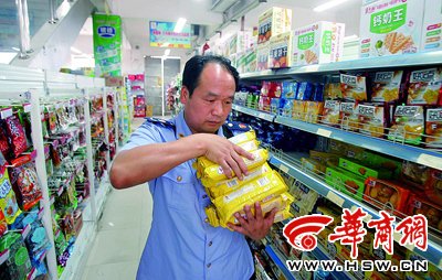 ????在商城休閑食品區的貨架上,記者還發現,一款本地品牌鍋巴,包裝上的生產日期是2010年10月26日,保質期為180天,差一周時間該產品過期兩個月;河南生產的一款五谷米片,包裝上的生產日期為2010年8月2日,保質期為9個月,過期近兩個月。
