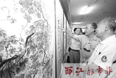 昨日上午11時,市博物館二樓聚集了不少熱愛書畫藝術(shù)的市民群眾,他們有的獨自站在精美的書畫作品前細細品味,有的則三兩結(jié)伴對書畫作品品頭論足,還有的干脆拿出照相機在書畫作品前拍照留念?!坝^賞本地書畫家的作品,可以觸摸到梧州千年歷史變化的脈搏?!睍嫄酆谜邚埶N說,梧州書畫家的作品,更加貼近梧州人自己的生活,反映了梧州的自然景觀和民族風情。不少前來參觀的市民表示,這些書畫作品雅俗共賞,可以讓人從中看到梧州的人文古跡和秀麗風光,感受到梧州現(xiàn)代都市面貌日新月異的變化。