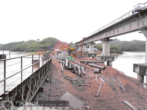 ????橫縣訊 橫縣新福鎮(zhèn)關(guān)塘社區(qū)的村民看到,施工方在黎欽鐵路橫縣段飛龍河鐵路大橋邊搭起一個(gè)平臺(tái),村民擔(dān)心此舉可能影響泄洪。施工方則表示,此舉若對(duì)水位造成影響,村民應(yīng)該反思。