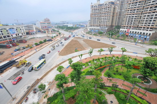 ????8月10日上午,密集的車流通過拓寬改造輪廓初顯的紅嶺路與三龍大道、新興三路延長線相連接的路口。在紅嶺新區(qū)開發(fā)中,基礎(chǔ)設施先行,一批干線道路項目的建設推進,使新區(qū)框架迅速形成。 李鴻榮 攝