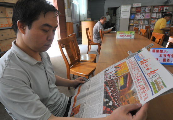 ????8月31日上午,在市圖書館閱覽室,一名市民正在仔細地閱讀當天的《梧州日報》。梧州市第十二次黨代會隆重召開,市民群眾通過新聞媒體了解大會的相關內容。李鴻榮/攝