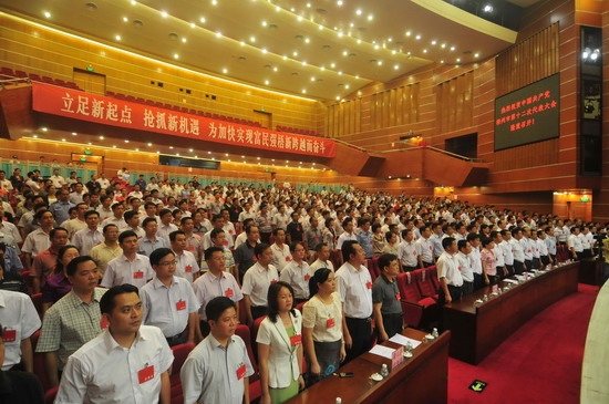 8月31日,中國共產黨梧州市第十二次代表大會在激昂雄壯的《國際歌》歌聲中勝利閉幕。李煜榮/攝