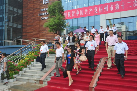 ????8月31日,中國共產黨梧州市第十二次代表大會在市文化展覽中心勝利閉幕。代表們精神飽滿地走出會場。李煜榮/攝