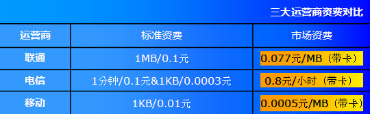 聯通把另外三個網絡遠遠拋在身后,但是,這樣下載的背后,你知道有多少錢在飛奔向聯通的腰包嗎?事后聯通發來短信:“先生您好,您本次上網累計使用流量2.6G!!!!”剛才還爽爆的心情,瞬間一瀉千里。既然說到了費用,下面我們來看看三家的資費對比。