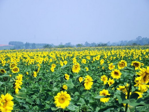 ????萬(wàn)畝向日葵種植基地是武宣縣的一大景點(diǎn),向日葵種植基地在距離縣城5公里的七星村。深秋進(jìn)入向日葵的盛花期,一片連著一片,迎風(fēng)招展著向陽(yáng)的笑臉,風(fēng)中飄來(lái)淡淡的葵花香,競(jìng)相綻開(kāi)的向日葵,吸引了廣西及柳州周邊的一撥撥游客到這里賞花,也吸引了眾多的攝影愛(ài)好者到此捕捉美景。盛放的葵花仿如連著天際,這樣的陣勢(shì)相比花都普羅旺斯毫不遜色。