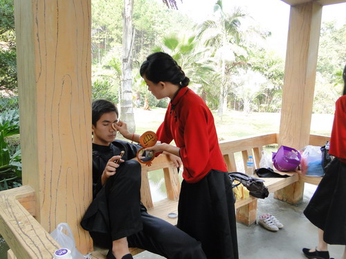 ????由梧州零距離出品、梧州獨立電影人陳遠良執(zhí)導(dǎo)的梧州首部微電影《蒼梧三釵》經(jīng)過18日至21日在騎樓城、龍母廟、圣文園三處外景的緊張拍攝后,今天,導(dǎo)演陳遠良將根據(jù)整體效果到市內(nèi)各地進行最后的補拍和改拍,預(yù)計于12月初完成后期制作。拍攝期間,零距離網(wǎng)站的記者一路跟隨劇組,記錄下電影《蒼梧三釵》拍攝的幕后花絮。