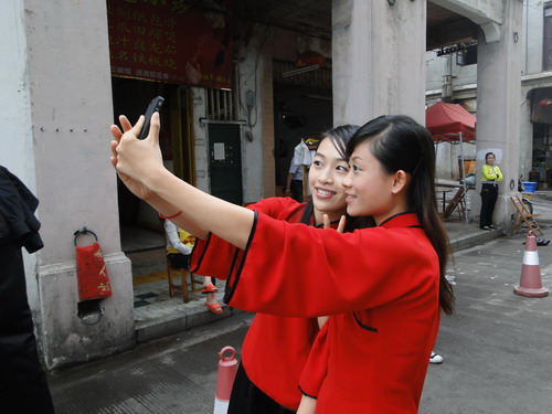 ????為了找到最好的拍攝場景和避開行人、車輛的干擾,劇組通常要在騎樓城來來往往走上好幾趟。盡管如此,演員們也從不叫累,“我覺得在騎樓城多走走也挺好的,可以順便為電影做宣傳。”梁舒琴說,很多市民都對他們的拍攝很感興趣,一聽到是梧州人自己在拍電影都十分支持,在金龍巷拍攝時,市民王伯還把自家的椅子搬出來,給演員們休息。